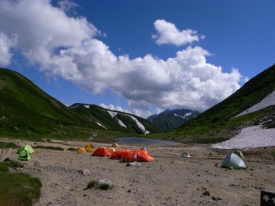 10:50 双六小屋着 テントを設営後、お昼を食べて少し休憩。