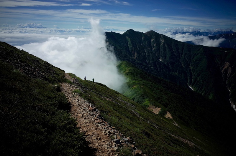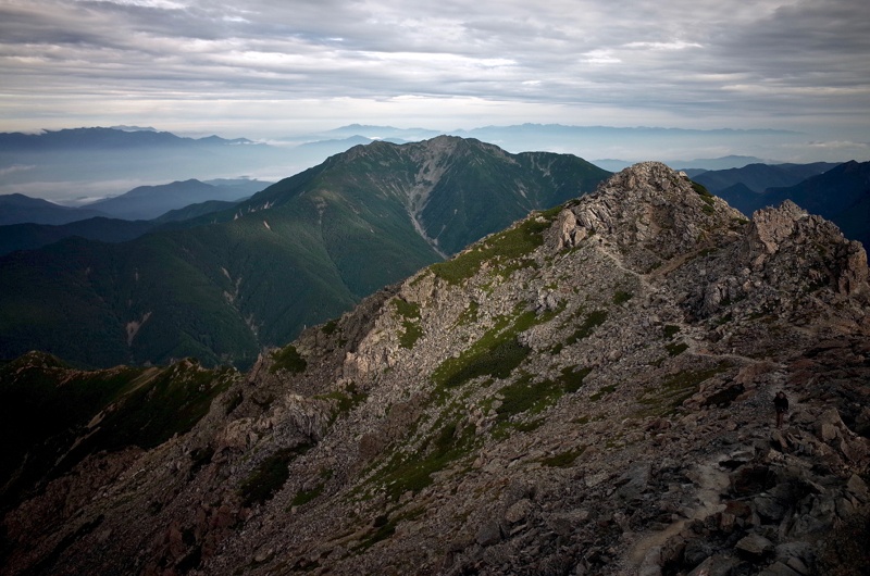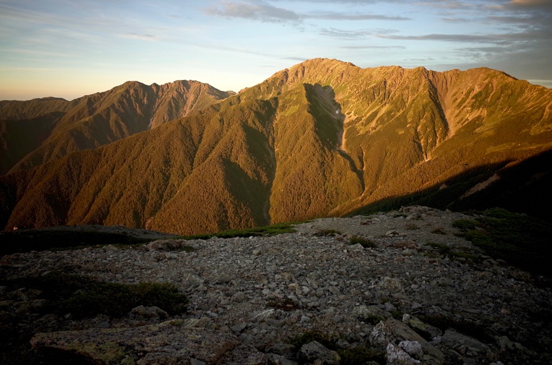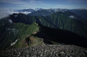 二日目、北岳山頂をピストンして、池山吊尾根を下山。