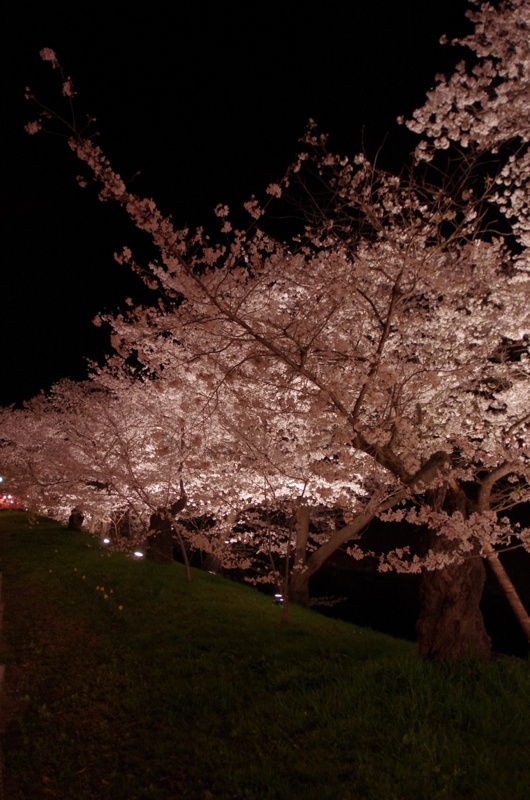 ヨメさんと夜桜を観に。 久しぶりの夜桜でとても綺麗でした。 そしてとても寒かった。 翌朝、庭には雪が。 夜のうちに降ったようです。